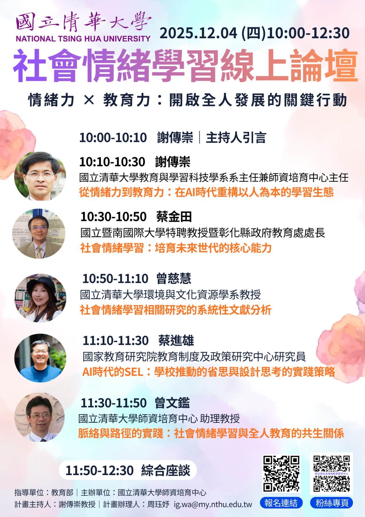 二、旨揭線上論壇係聚焦「社會情緒學習於教育領域之應用與發展」,探討如何透過提升情緒能力,促進AI時代學習者之全人發展;該論壇亦分享相關研究成果及實踐策略,為教育工作者提供具體行動方案與啟發。